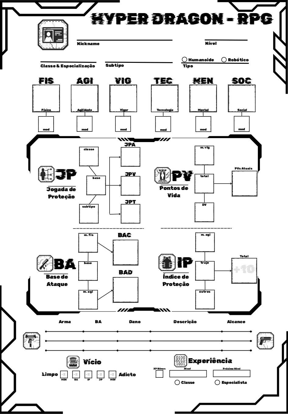 - 4 Classes Básicas: Bruto, Punk, Doc e Hacker.